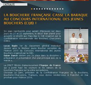 Suite à leurs titres de meilleurs apprentis de France (MAF 2015 pour Lucas BAYLE et MAF 2013 pour Dylan DANOT), ils partent en binôme aux Pays-Bas ces 21 et 22 septembre 2015 pour le concours du meilleur jeune Européen - concours de boucherie bien entendu !