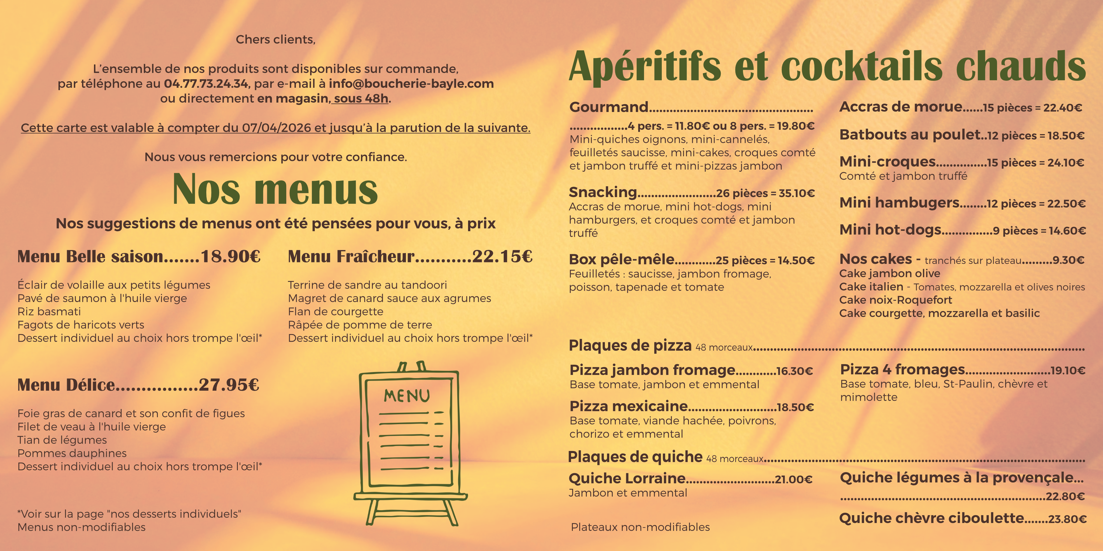 Avec le retour des beaux jours, la Maison Bayle vous dévoile sa nouvelle carte traiteur printemps–été