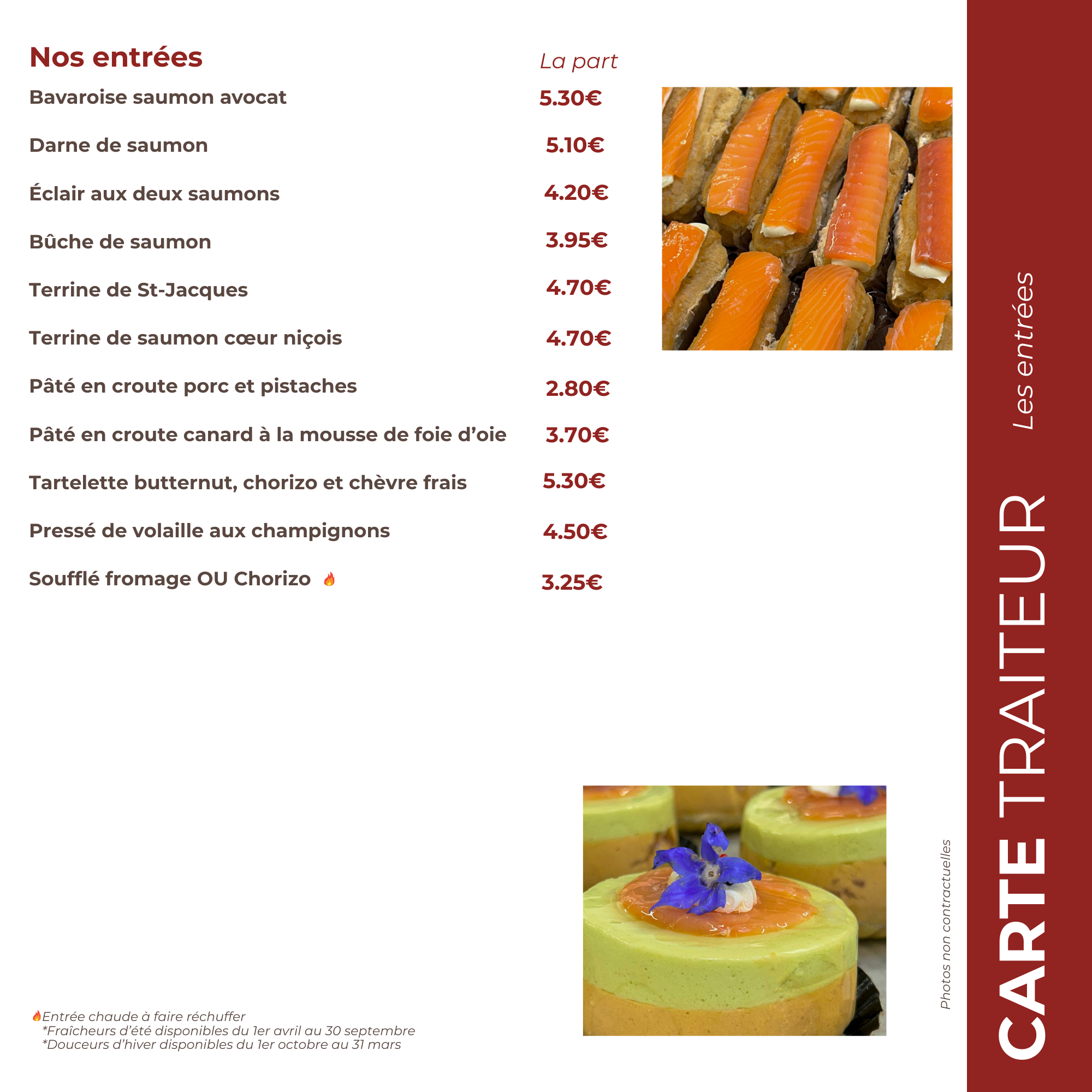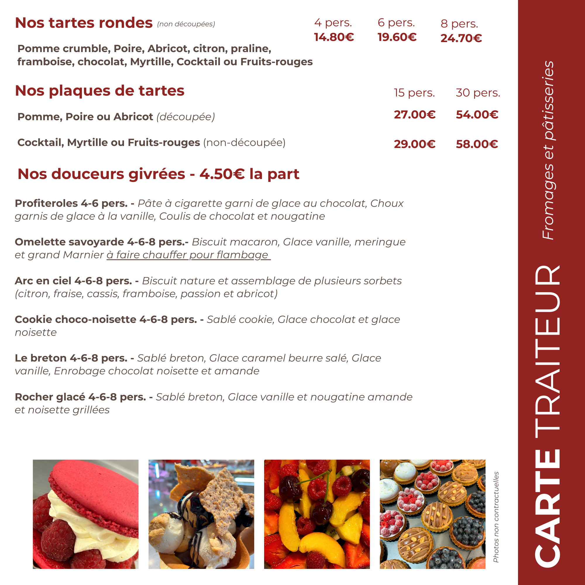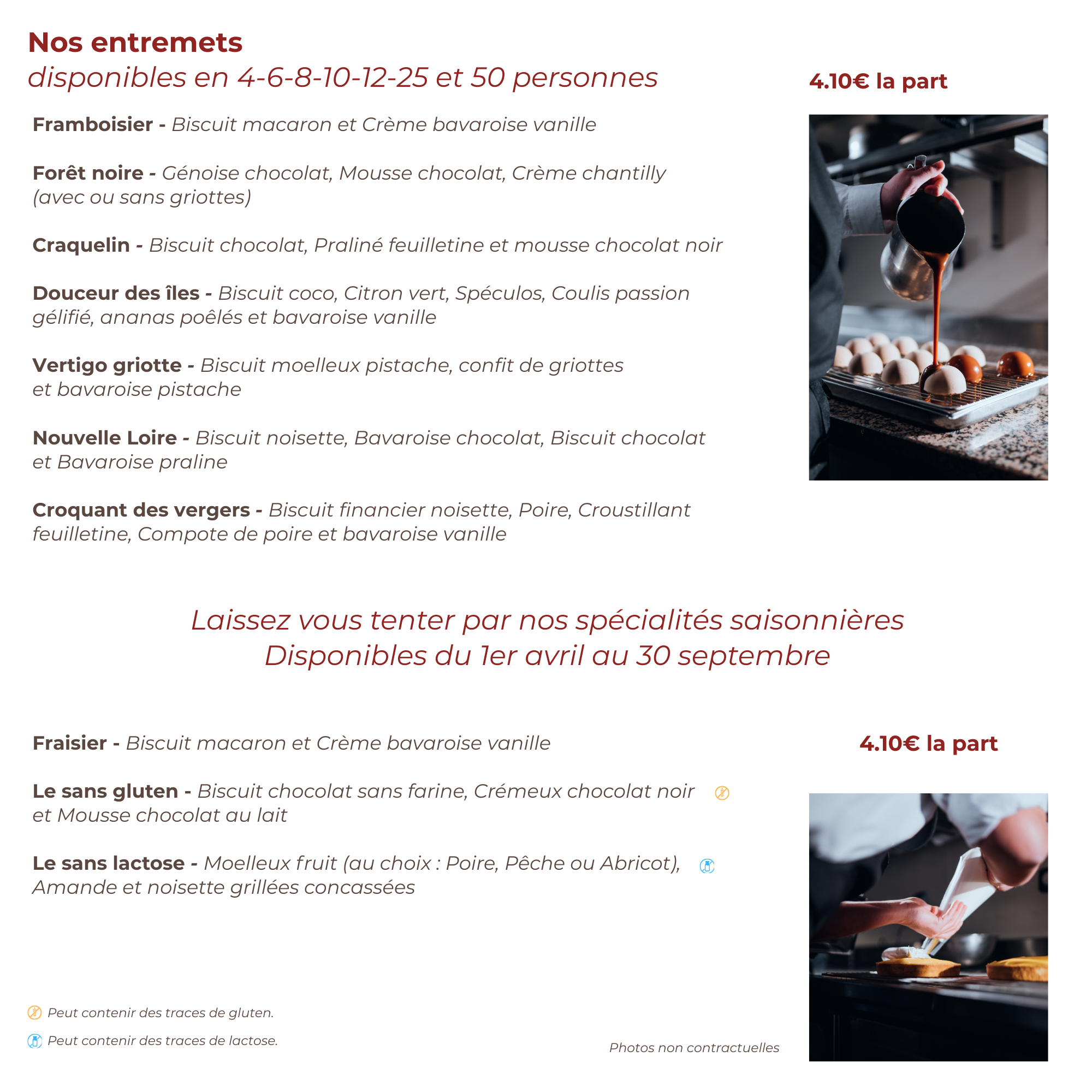 "De l'entrée au dessert" nous mettons un point d'honneur à vous accompagner : des pièces froides (pain surprise, toast, verrines fraîcheur), en passant par les pièces chaudes (Plaques de pizza et de quiche, croustillants d'escargot, accras de morue, ...) pour finir par une note sucrée (mini-gateaux et macarons).