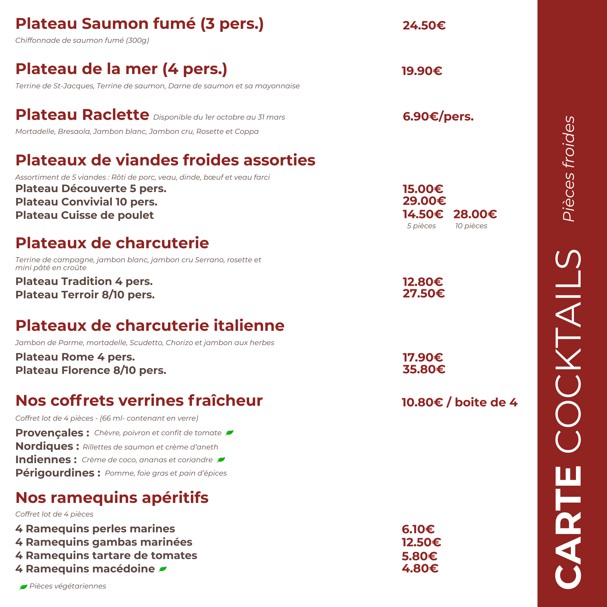 Un pic nique, un repas de fête ou sans prise de tête : du buffet froid au repas chaud en passant par le dessert, nous avons ce qu'il vous faut !