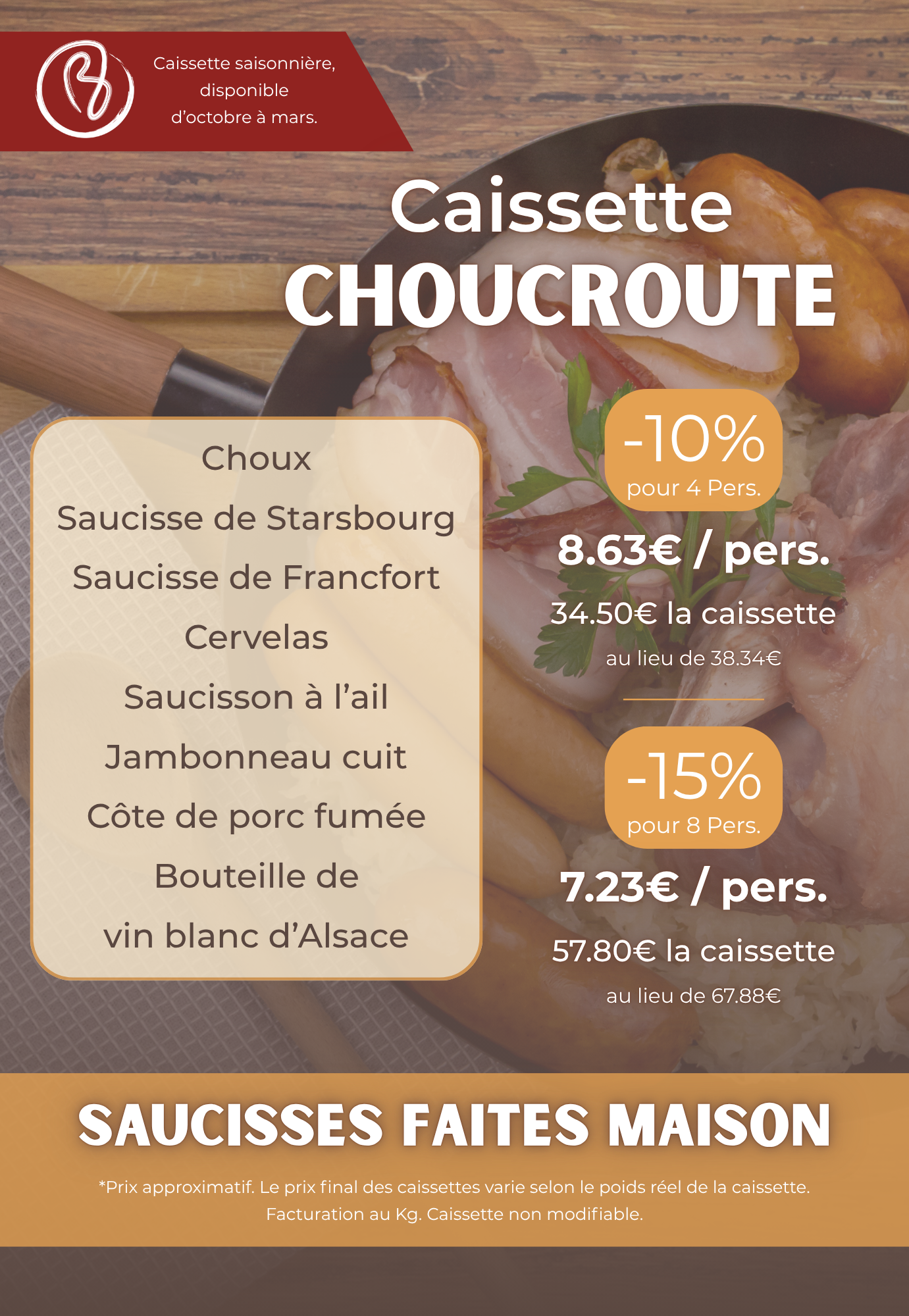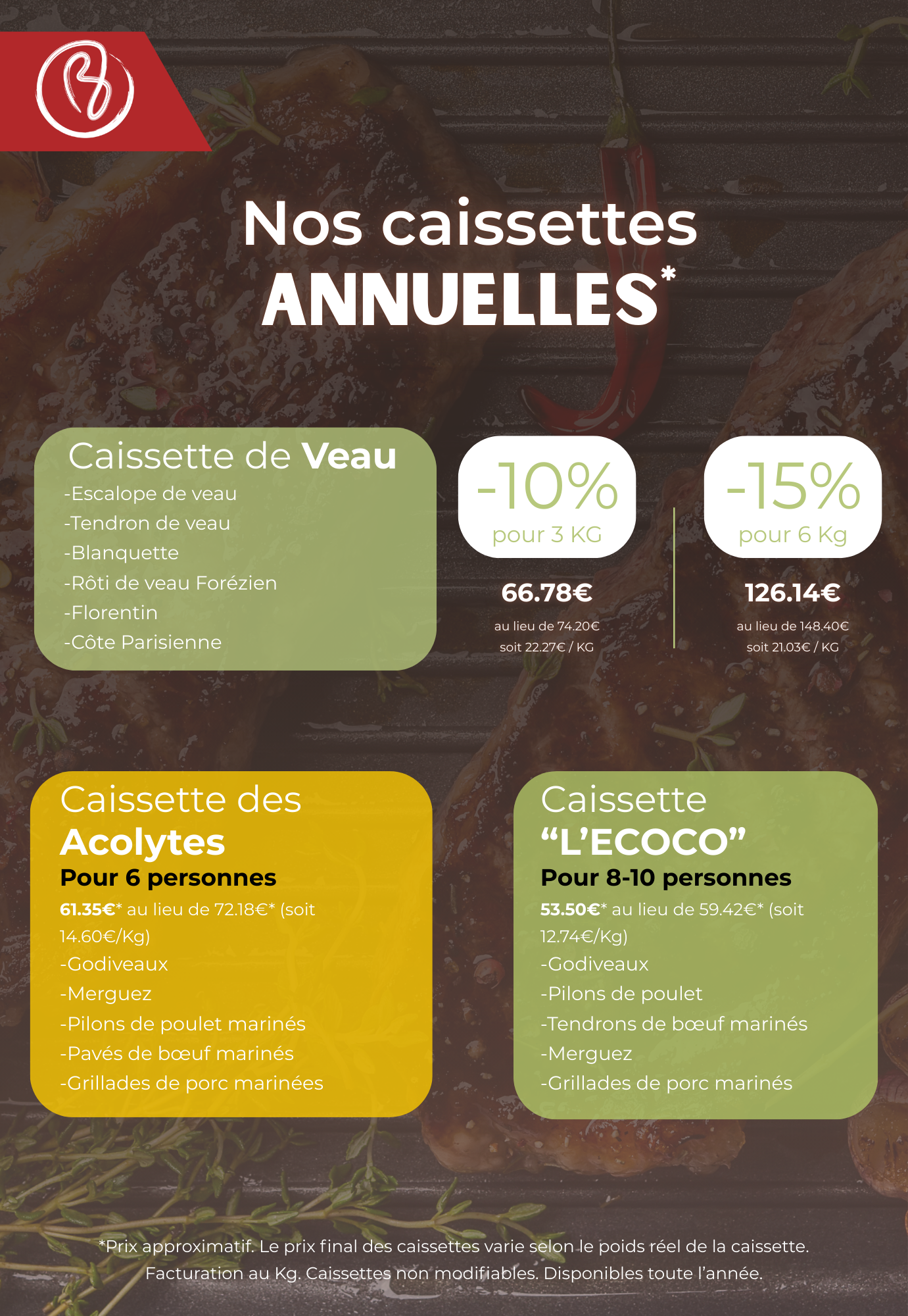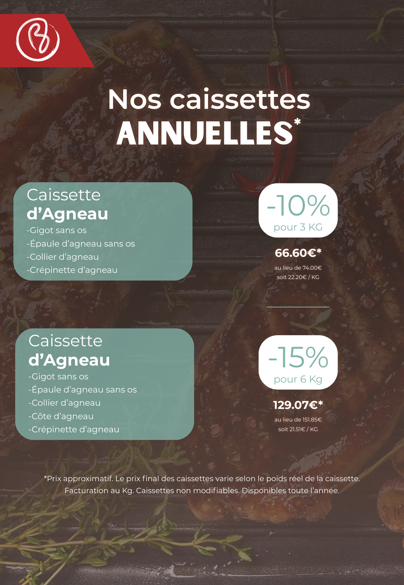 Pour rappel : Tous les prix sont approximatifs. Le prix final des caissettes varie selon le poids réel de la caissette. Facturation au Kg. Assortiment prédéfini et non modifiable.